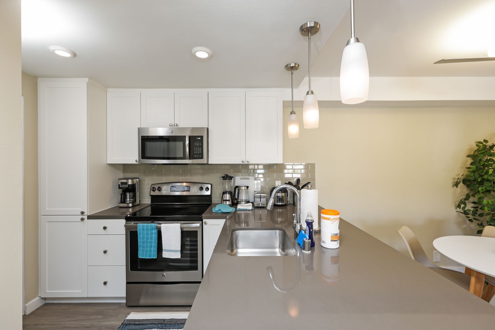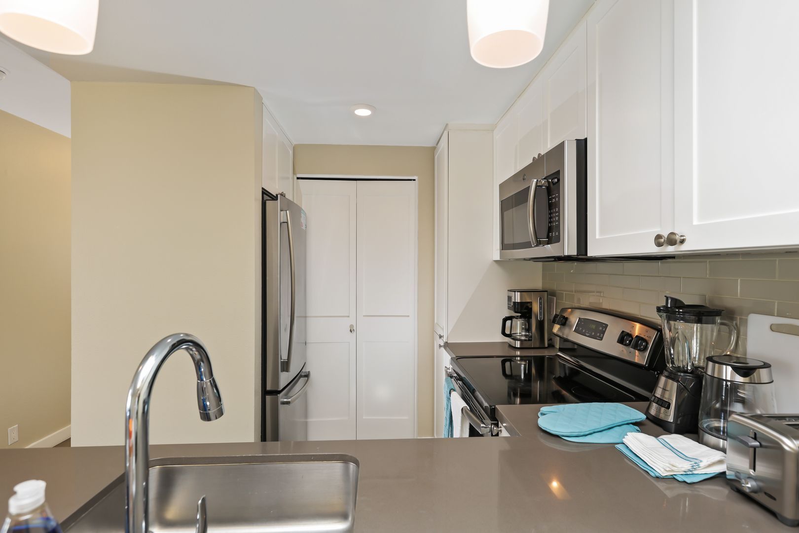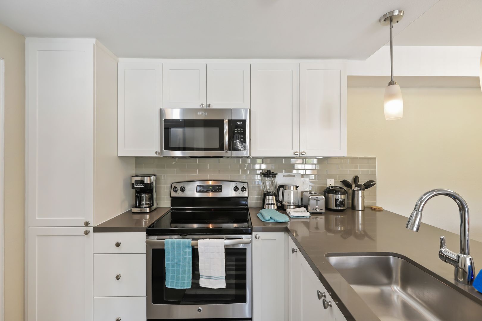 Fully equipped kitchen (pots and pans, coffee maker, toaster, etc.)