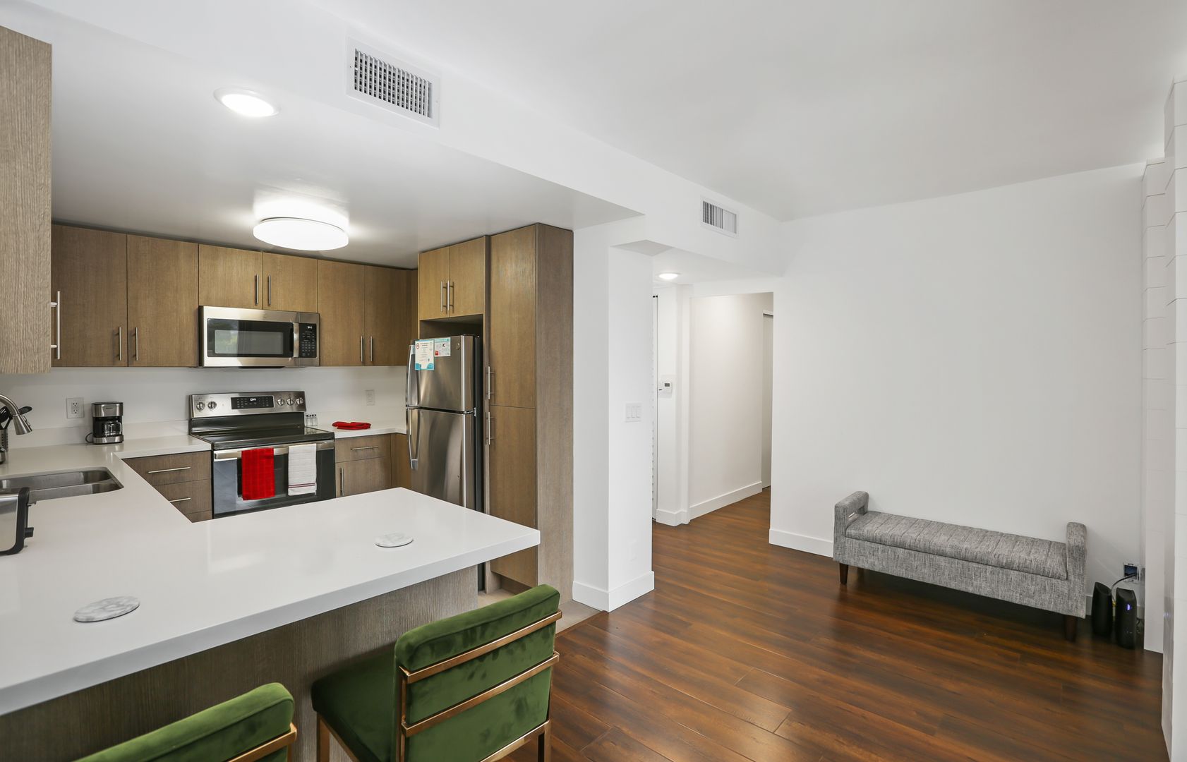- Fully-equipped kitchen (pots and pans, coffee maker, toaster, etc.)