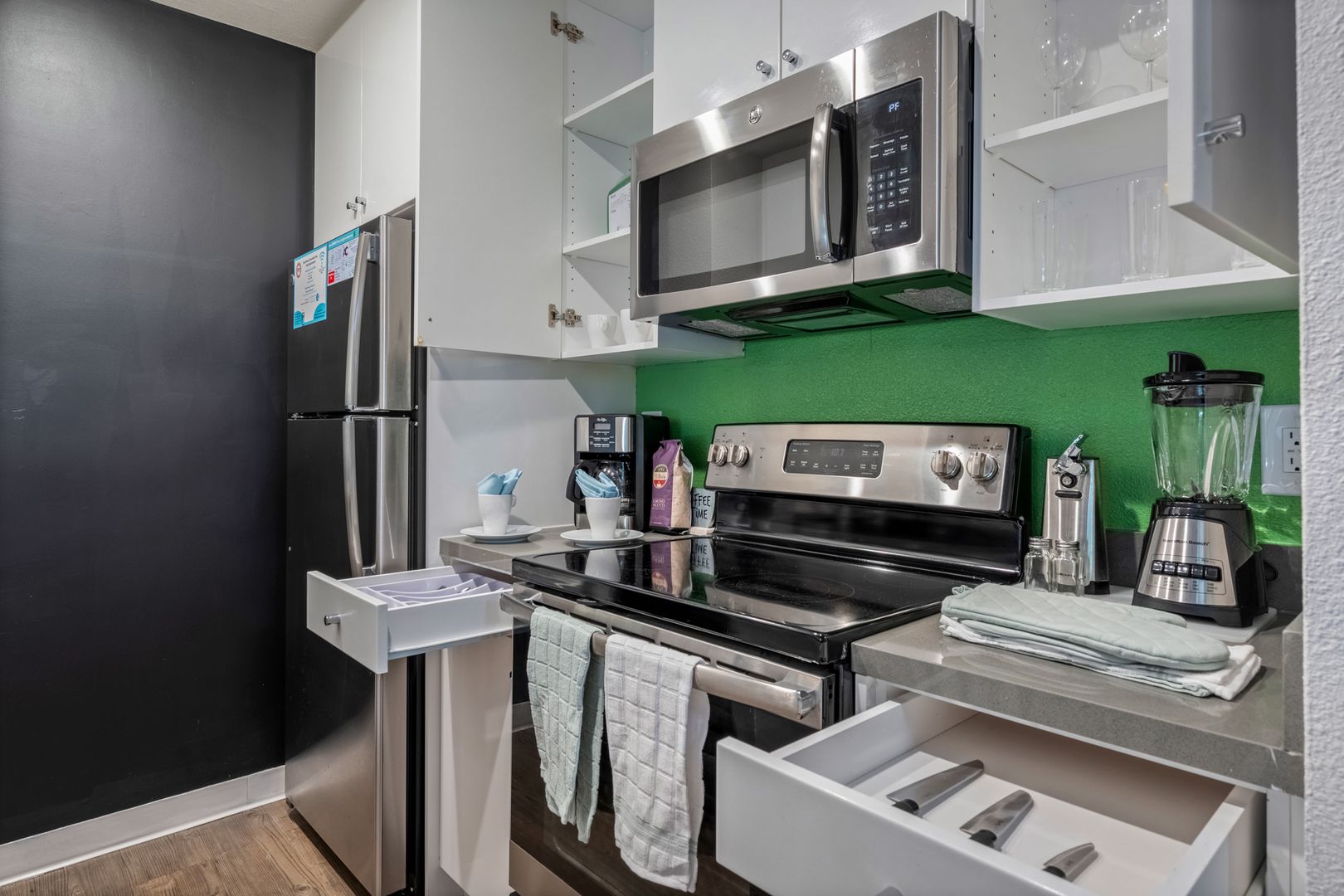 -Fully-equipped kitchen (rice cooker, coffee maker, toaster, the works!)